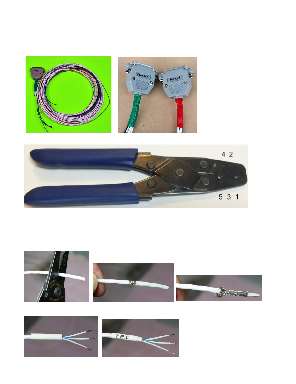 See throughout DB25 harness section for specific cables recommended strip lengths.