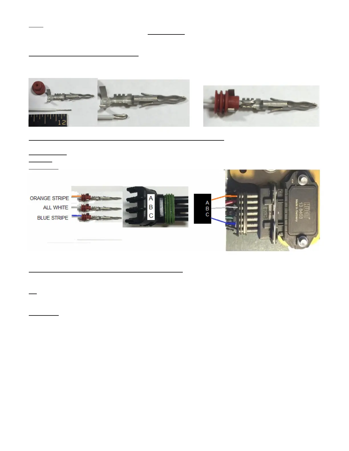 Orange stripe wire goes to Weatherpack A position & Orange wire going to ignition driver module.