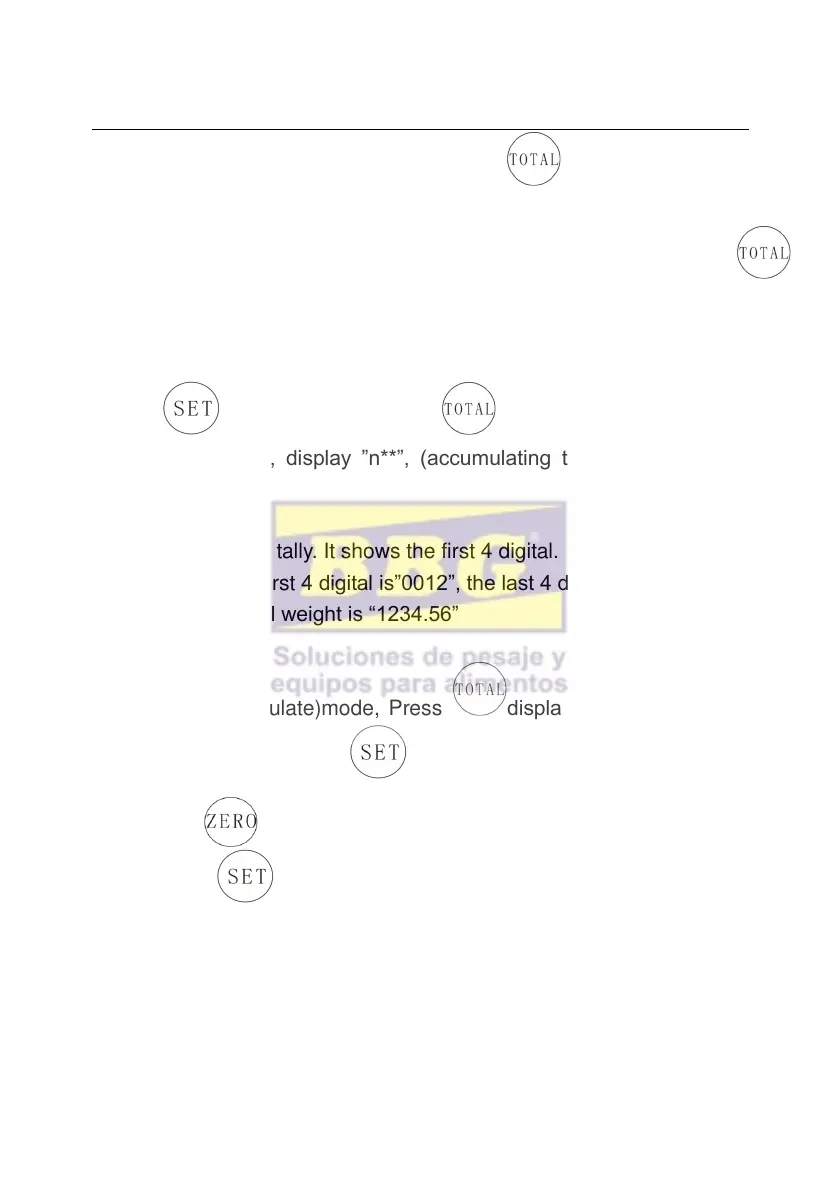 display. Press to clear the the total weight and exit accumulating mode.