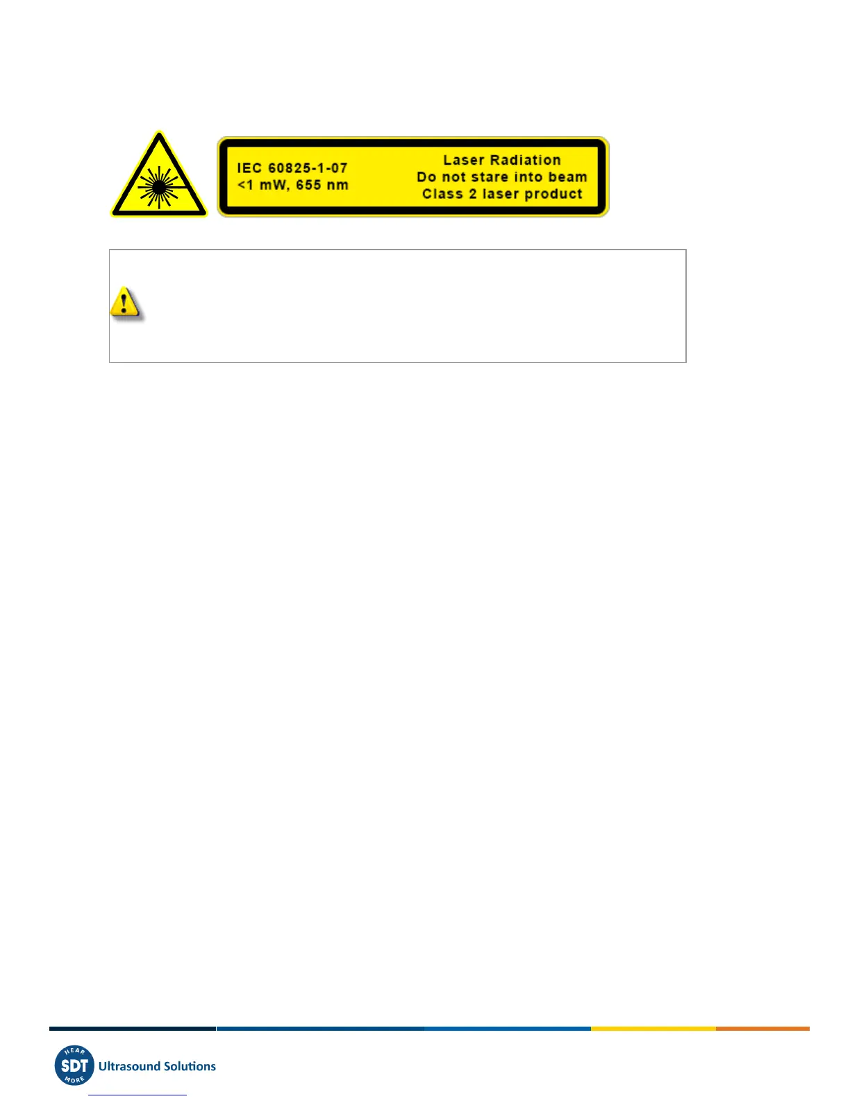 The SDT270 is equipped with a class 2 laser: risk of eye injury: