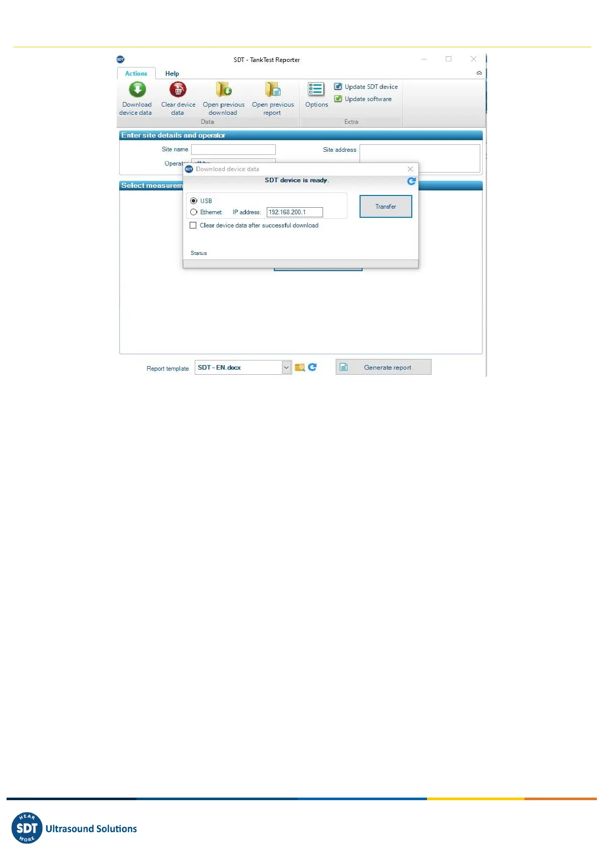 Click on "Transfer" to export your data from the SDT340 to the software.