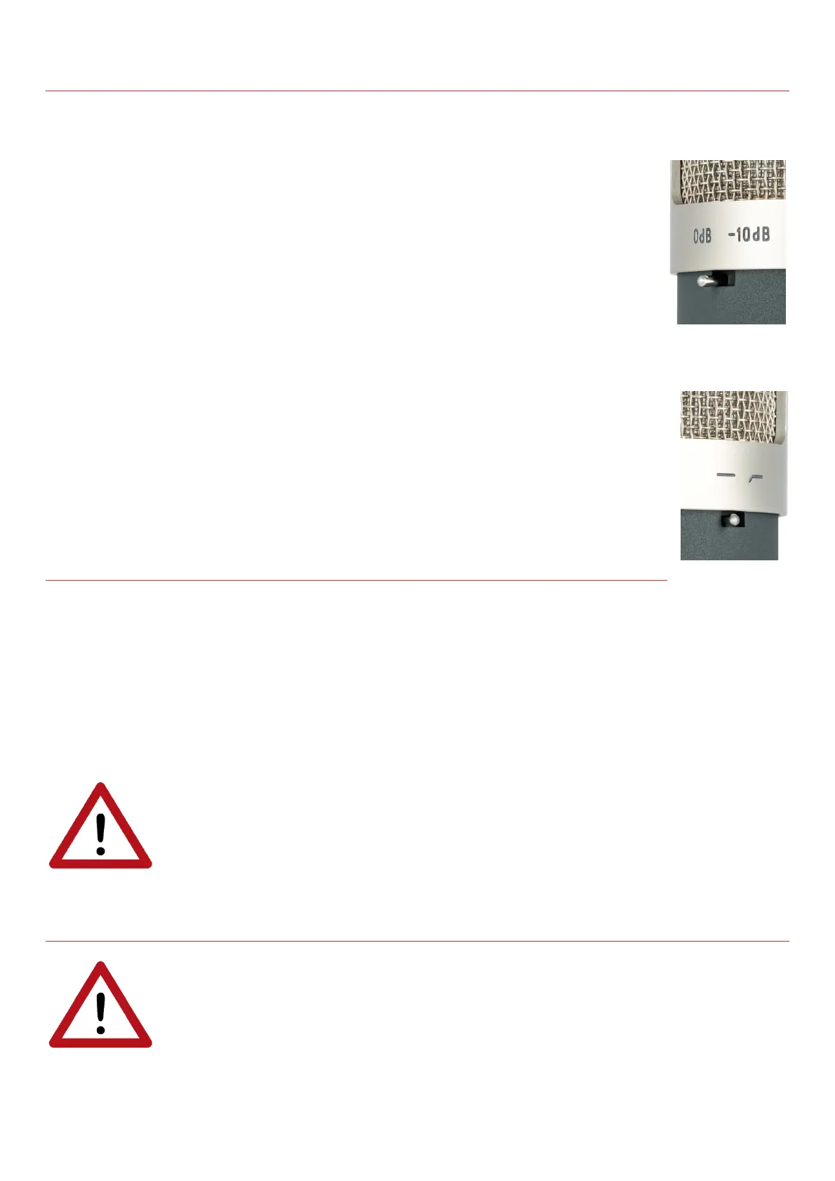 Mikrofons. Ist er aktiviert, schwächt er das Signal von um 10 dB ab, um die Aufnahme
