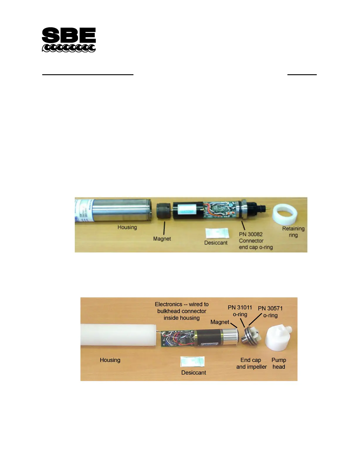 The pump housing must be disassembled to adjust the pump speed. The SBE 5P and 5T electronics are the same, but