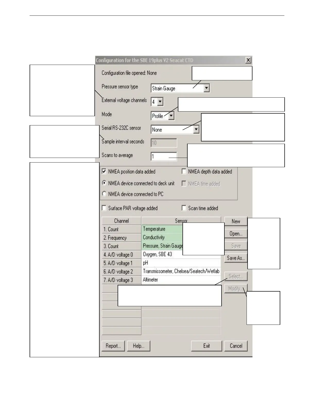 different sensor for that channel. Dialog box with list of