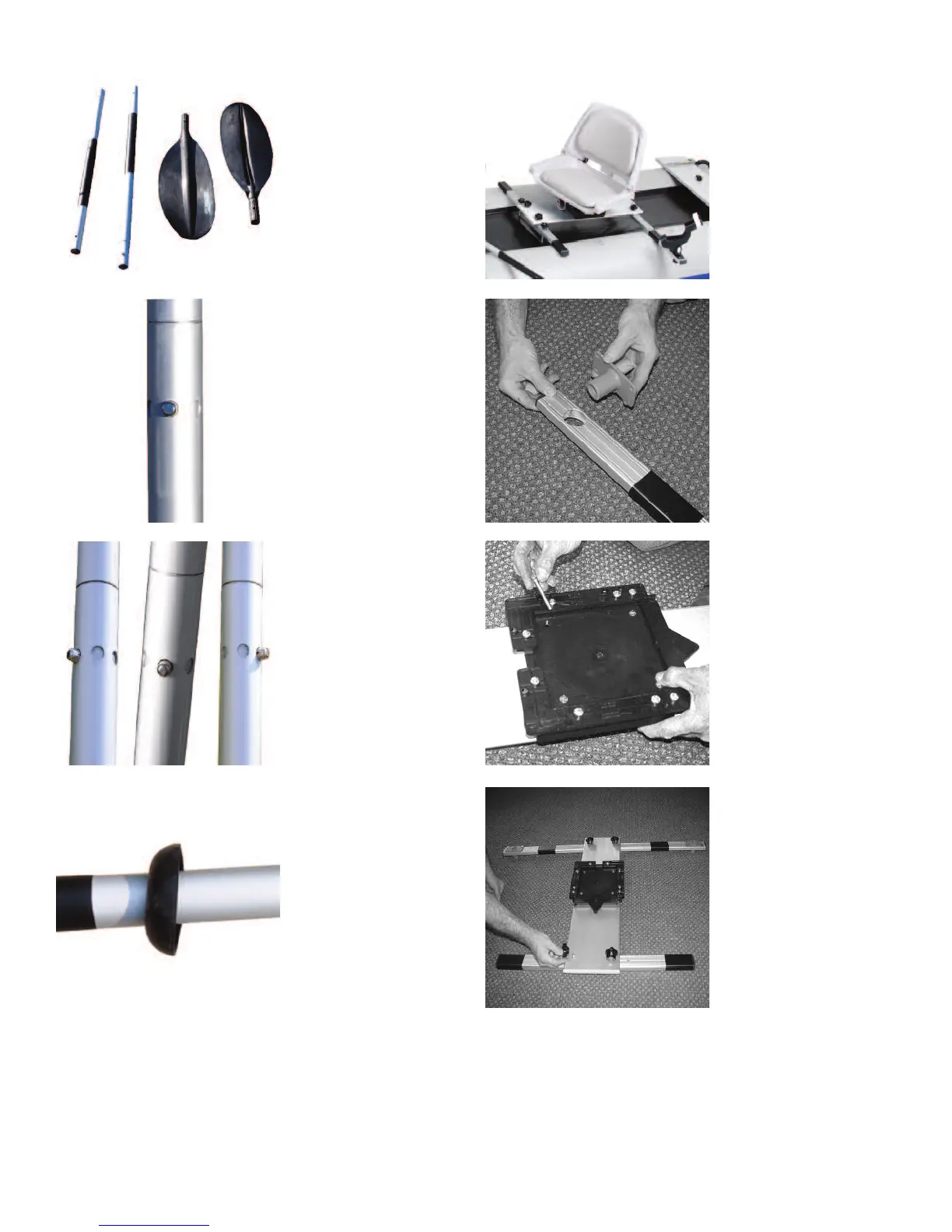 Sea Eagle 435PS - Assembly and Accessory Setup; 4-Part Paddle Assembly; Fishing Swivel Kit Assembly