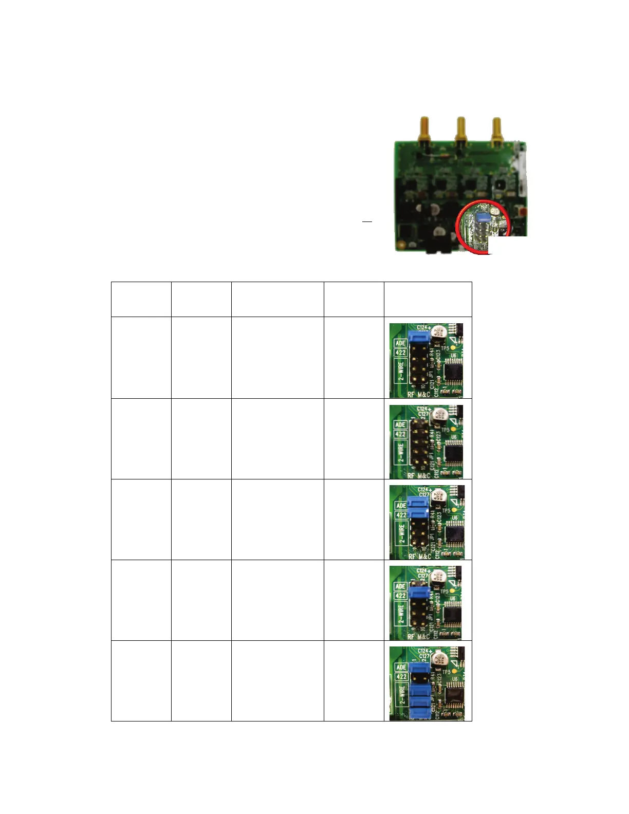 instead of RS422). Refer to the table below for the proper jumper