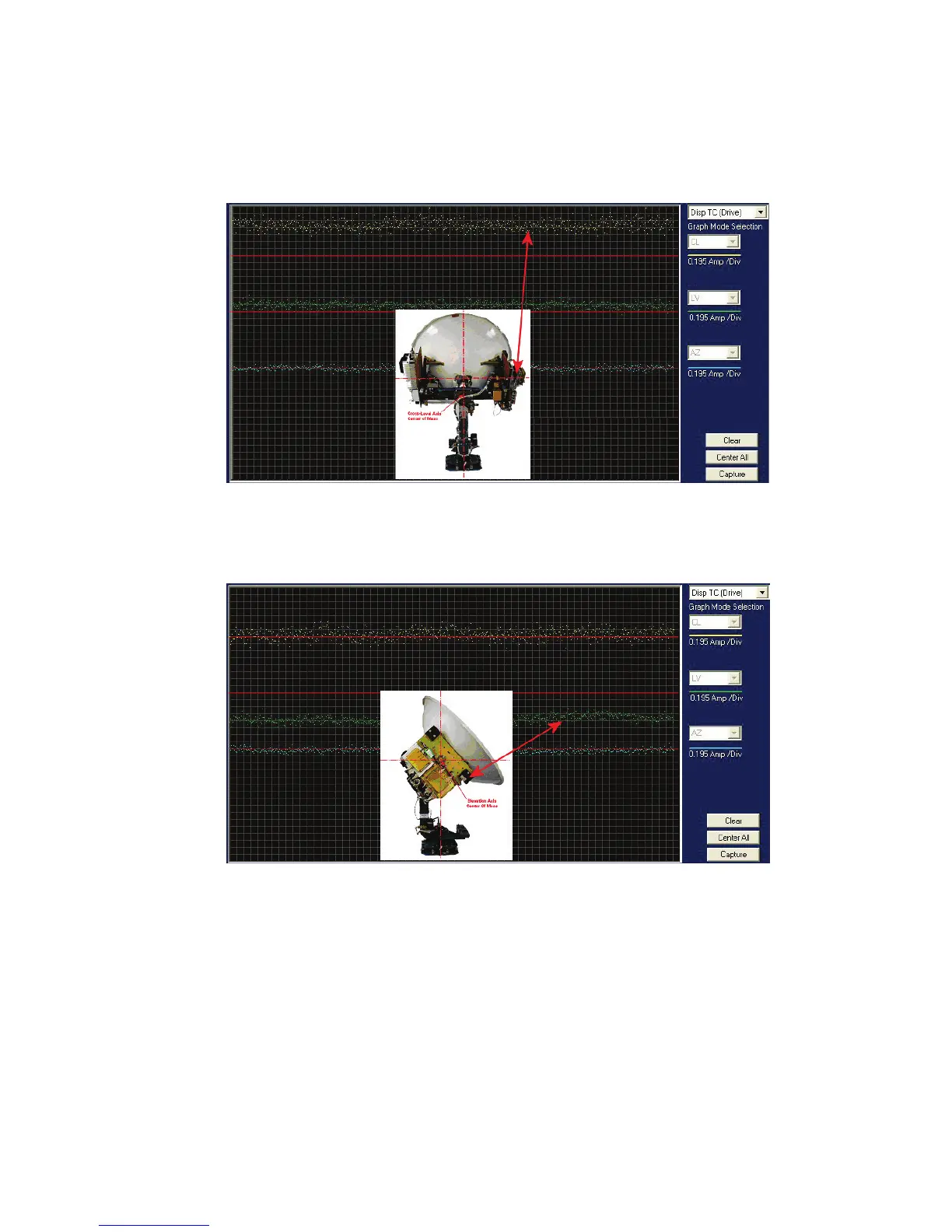• The Level display will plot below the reference line when the antenna requires CW drive (Up in