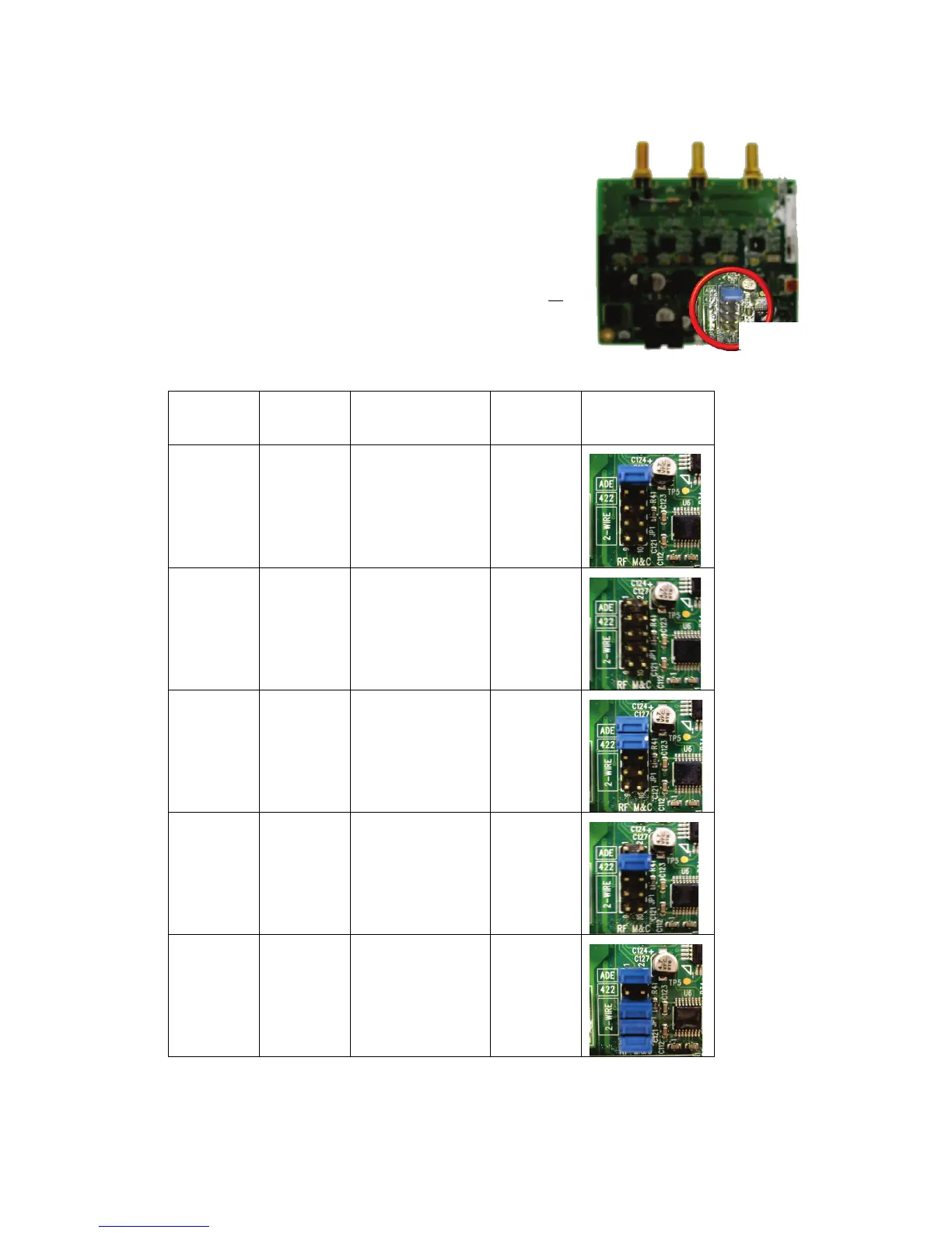 instead of RS422). Refer to the table below for the proper jumper