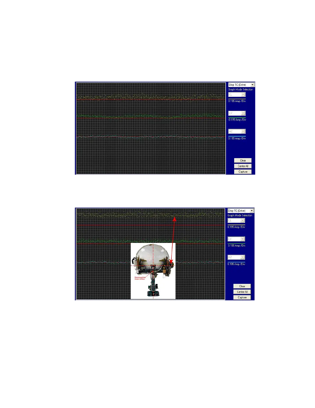 • This chart displays the Torque Command errors for each axis via three traces, CL (Cross Level), LV