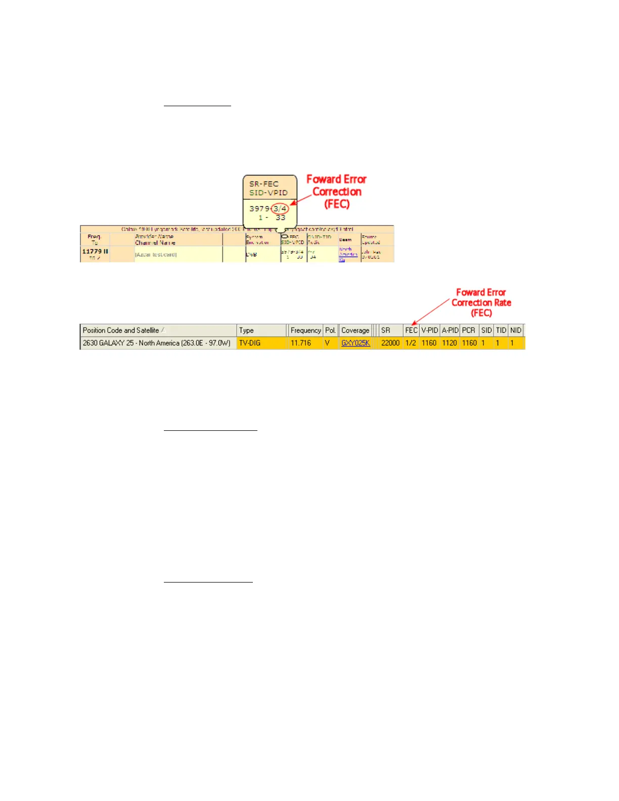 Site such as Lyngsat.com or Satellite Reference Software such as WWW.Lyngsat.com, the Forward Error