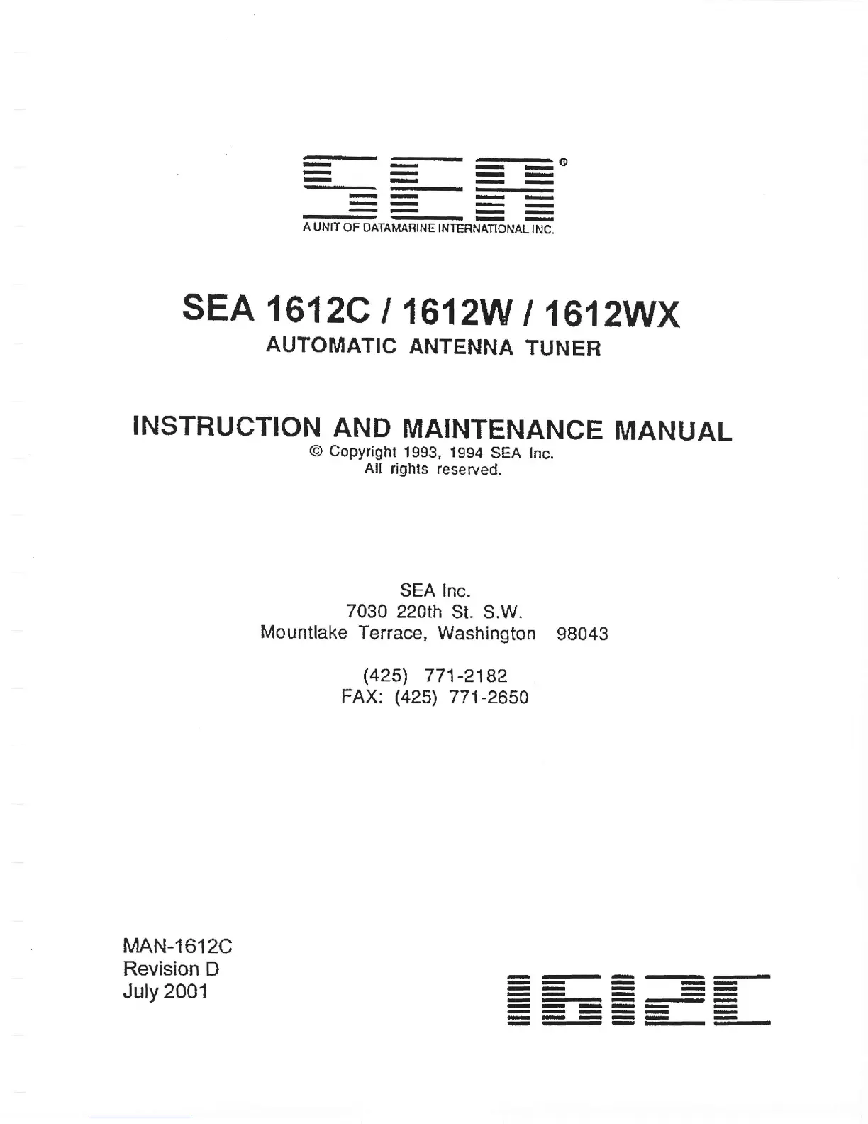 SEA 1612C - SEA 1612 C Automatic Antenna Tuner Manual