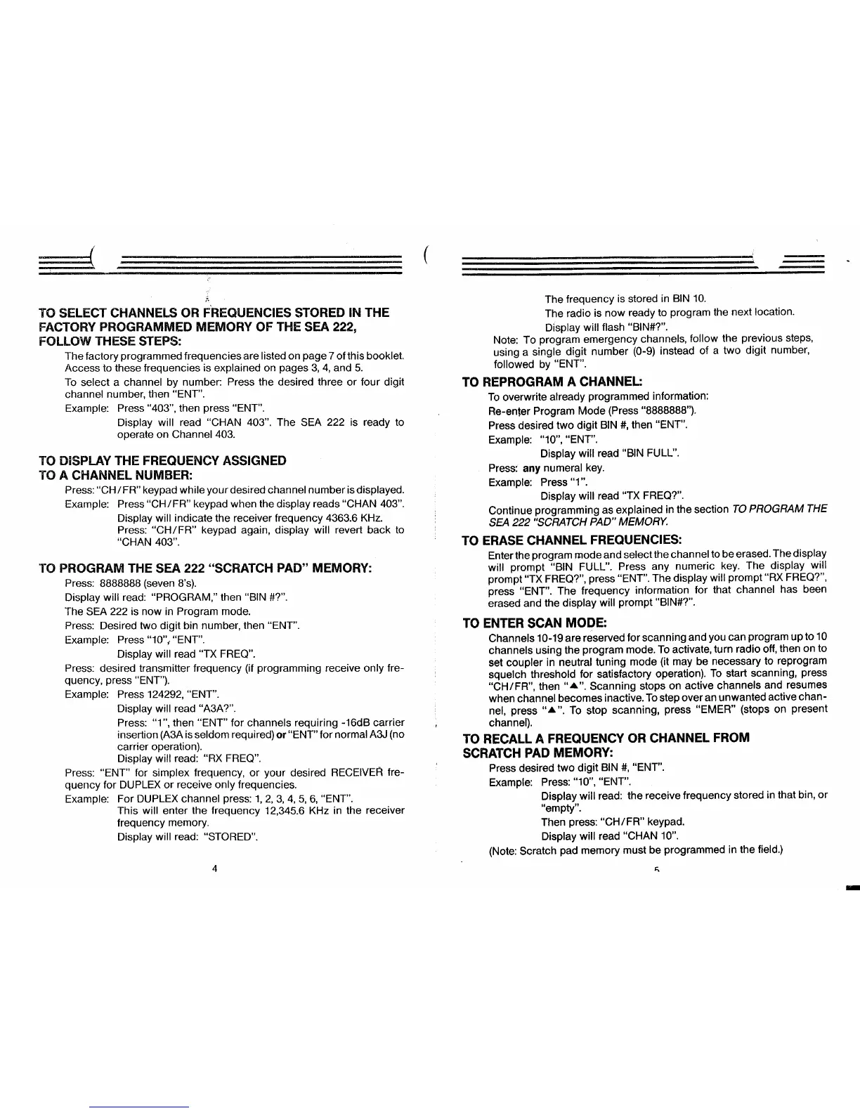 The factory programmed frequencies are listed on page 7 of this booklet.