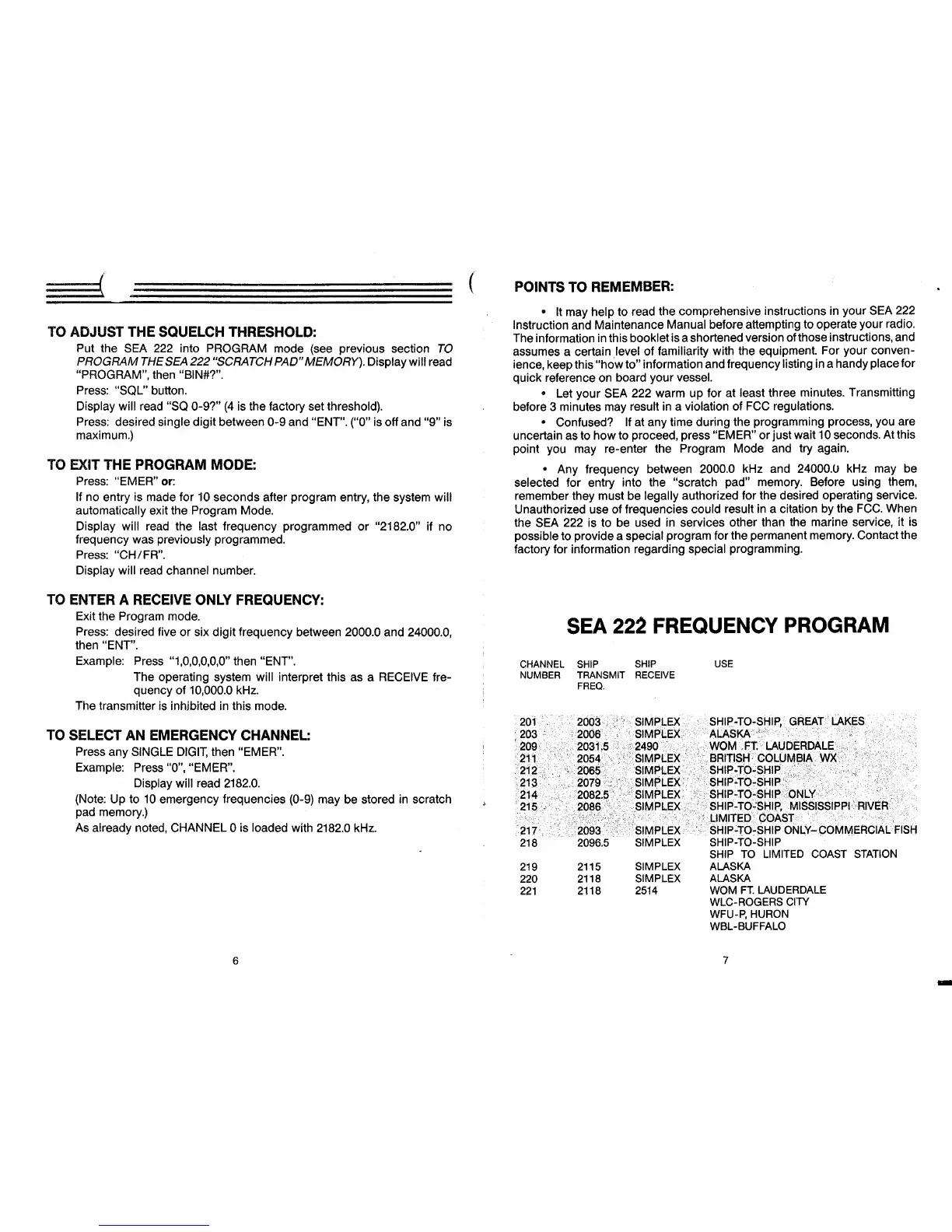 Let your SEA 222 warm up for at least three minutes. Transmitting