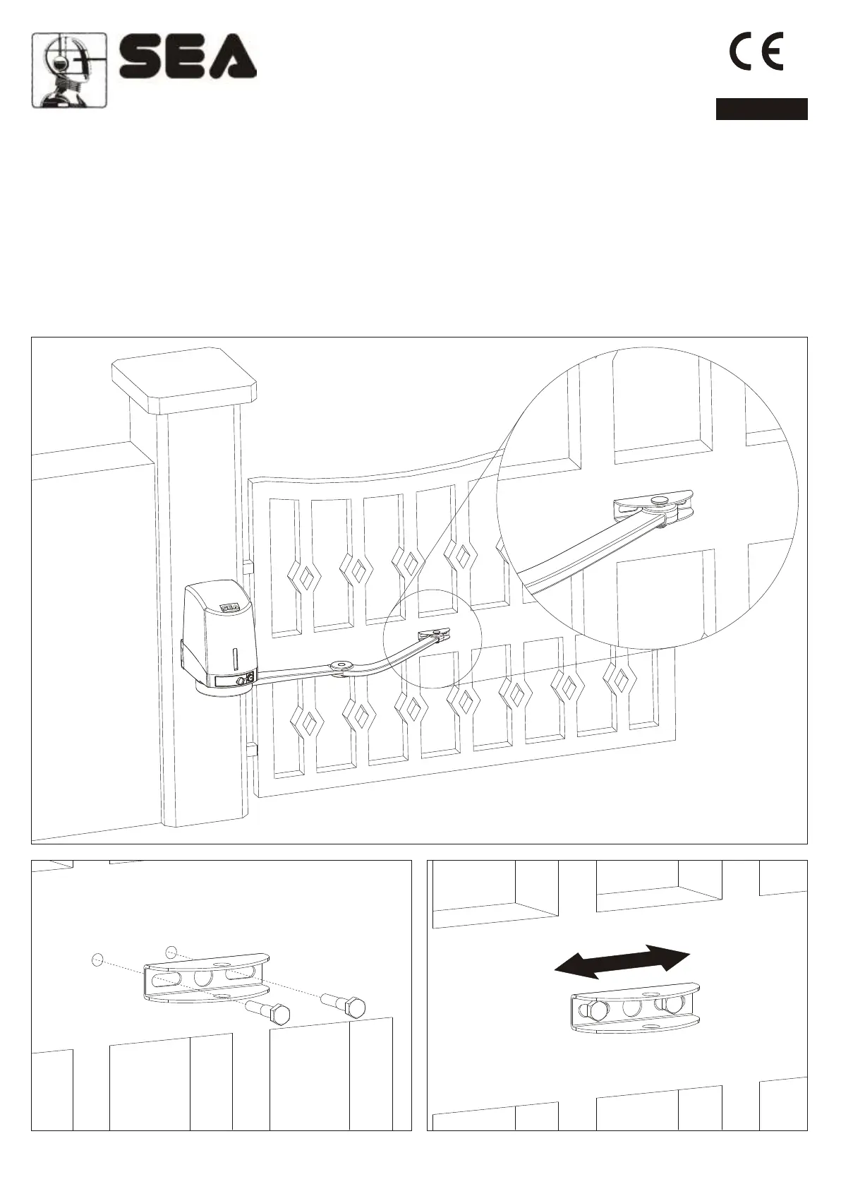 - Before tightening the screws move the front bracket to the right or to the left for a good positioning of the arm on the gate (Fig.