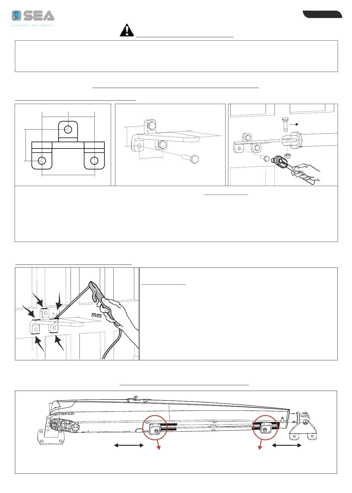 Once the operator has been mounted on the rear fixing bracket, close the leaf and proceed as follows:
