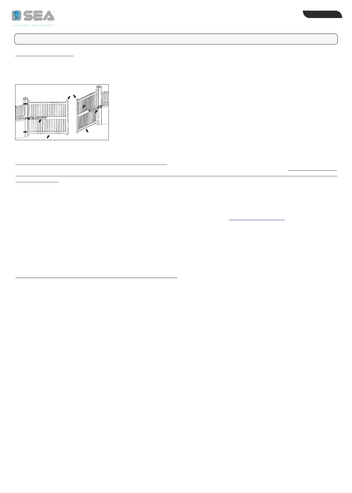 INTENDED USE: The operator has been designed to be used for the automation of swing gates only.