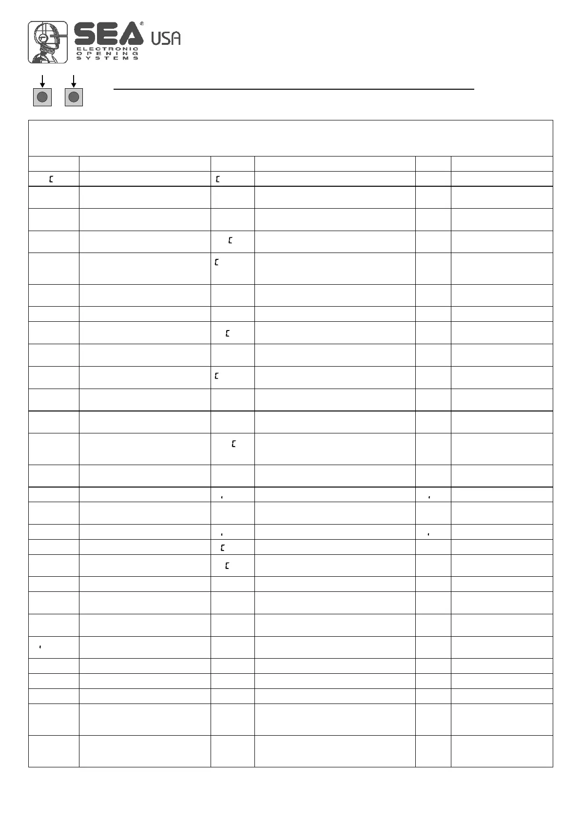 SPECIAL MENU FUNCTIONS TABLE USER 1 24V DG