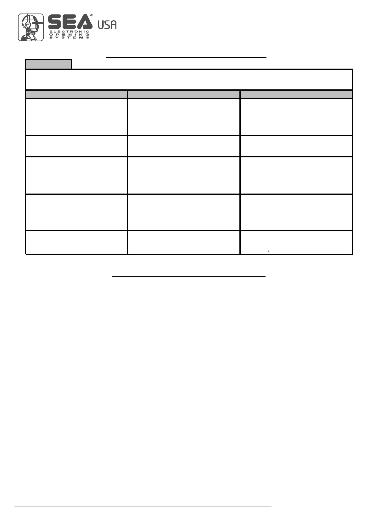 SEA USA Inc. is not responsible for errors in technical information printed in catalogs and installation manuals.