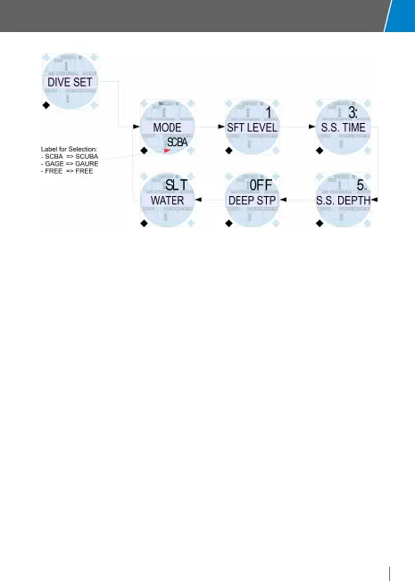 various submenus (“MIX”, “DIVE SET”) and are used to calculate the NDL.