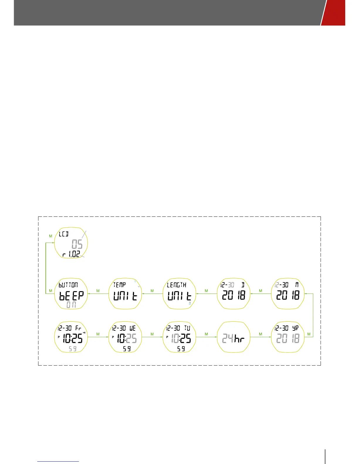 • To enter SET “T1”, press and hold the “M” button on the main screen until