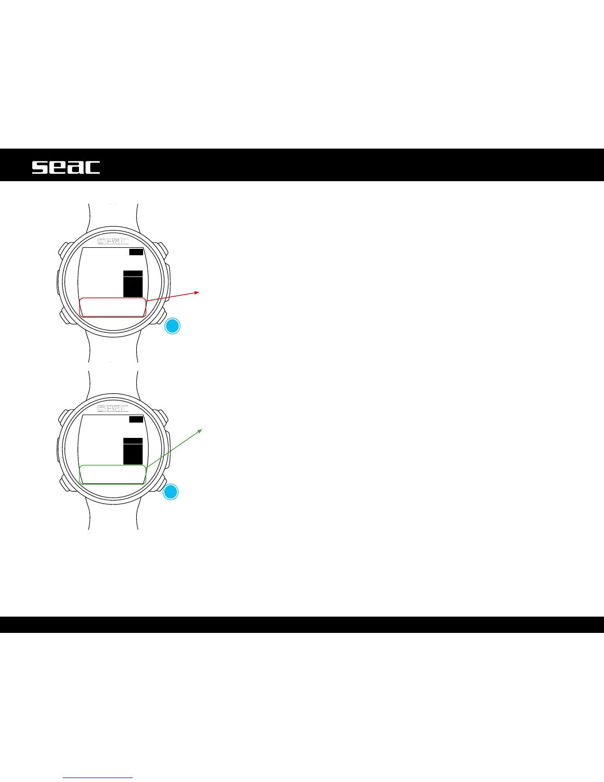 Ascent speed (in the center): Speed in real time (in meters/minute or feet/