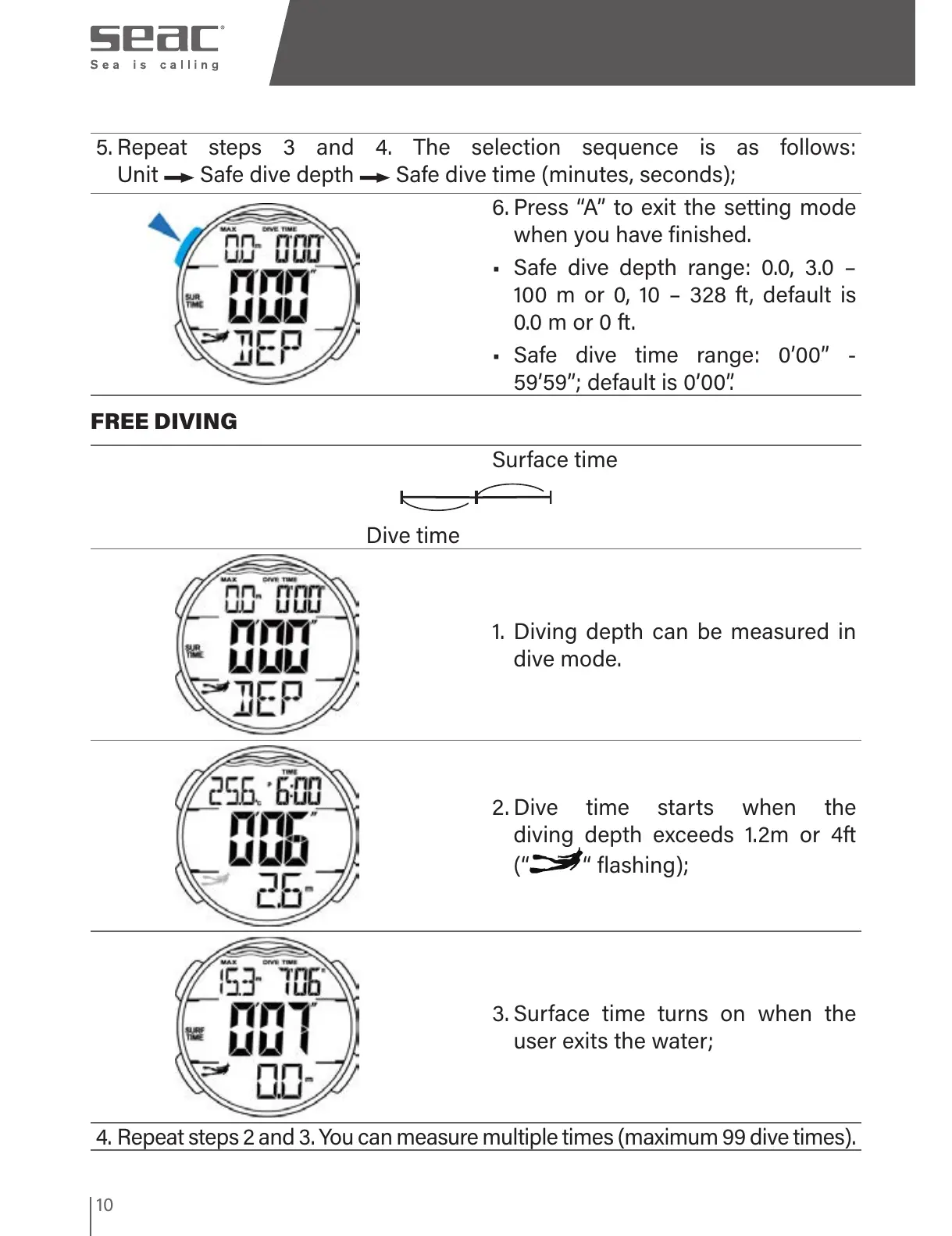 4. Repeat steps 2 and 3. You can measure multiple times (maximum 99 dive times).