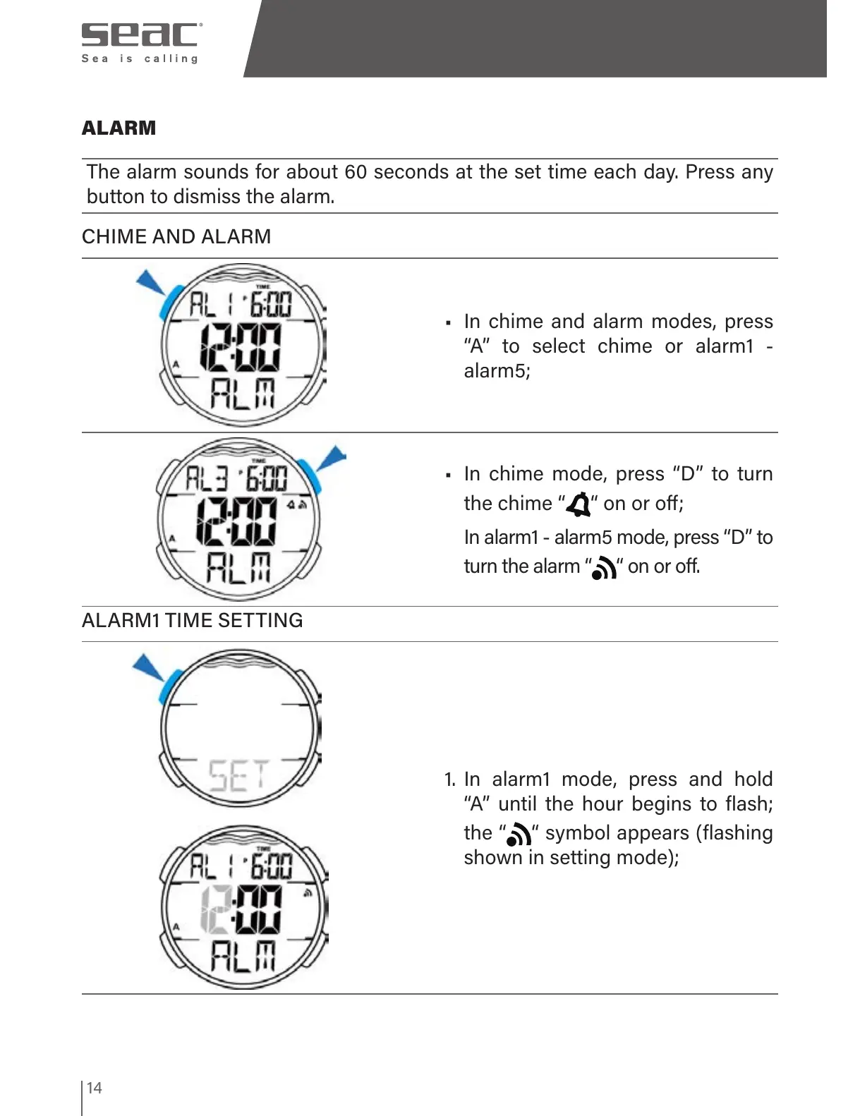 The alarm sounds for about 60 seconds at the set time each day. Press any