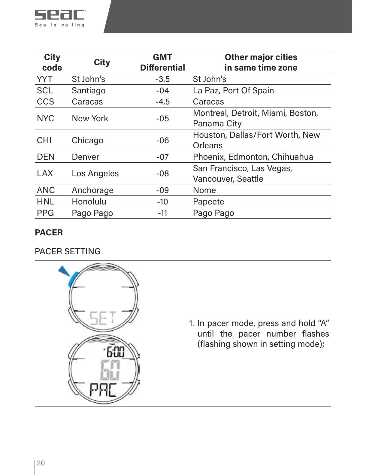 1. In pacer mode, press and hold “A”