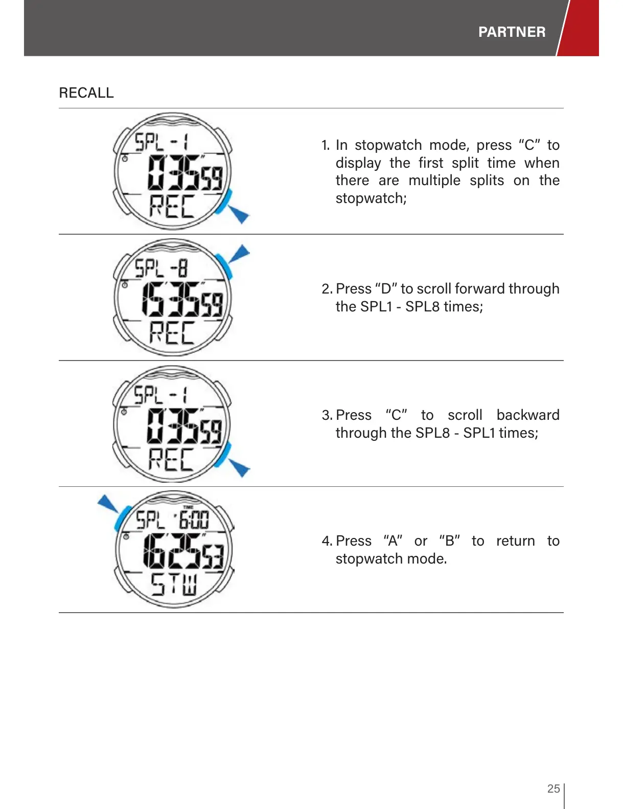1. In stopwatch mode, press “C” to