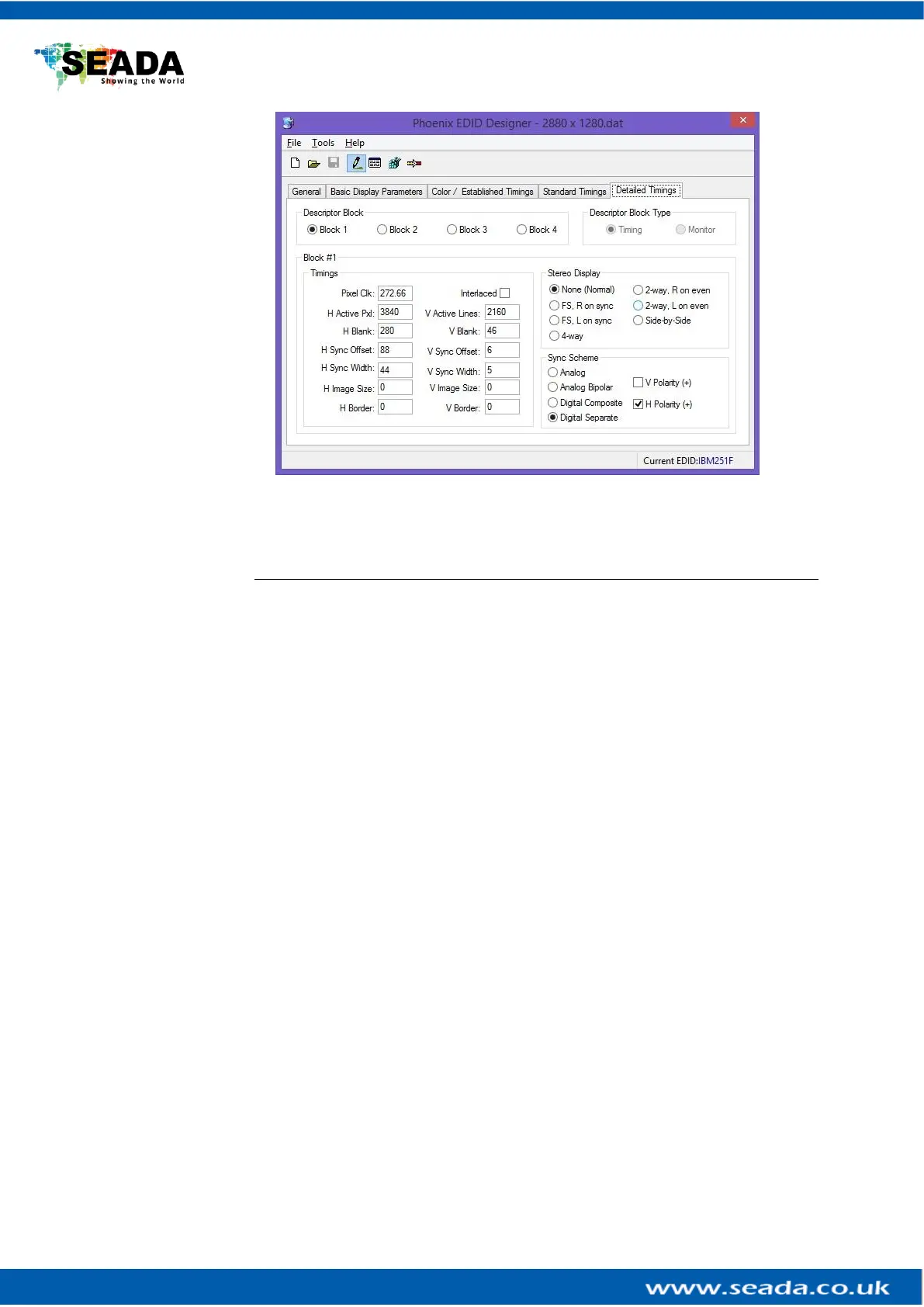 5. Change the H Active Pxl and V Active Lines to the required resolution setting