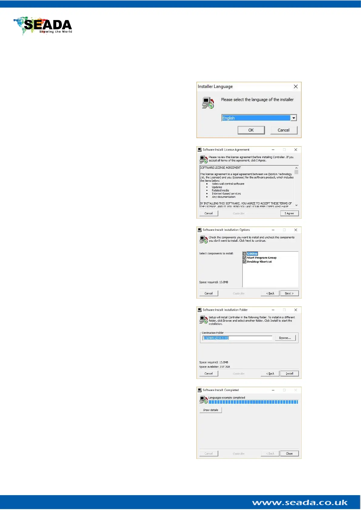 Insert the SEADA Software CD into your control PC’s CD-ROM drive to begin the installation. Double