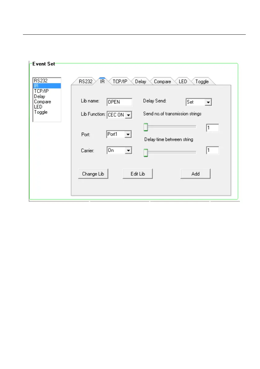 This item is used for setting the events for IR (1) ~ IR (2) ports. Click “IR”, it will show as below: