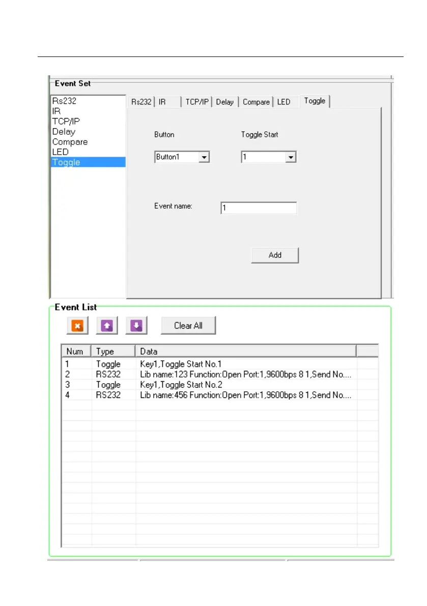 Add toggle & RS232 events for the Key 1.