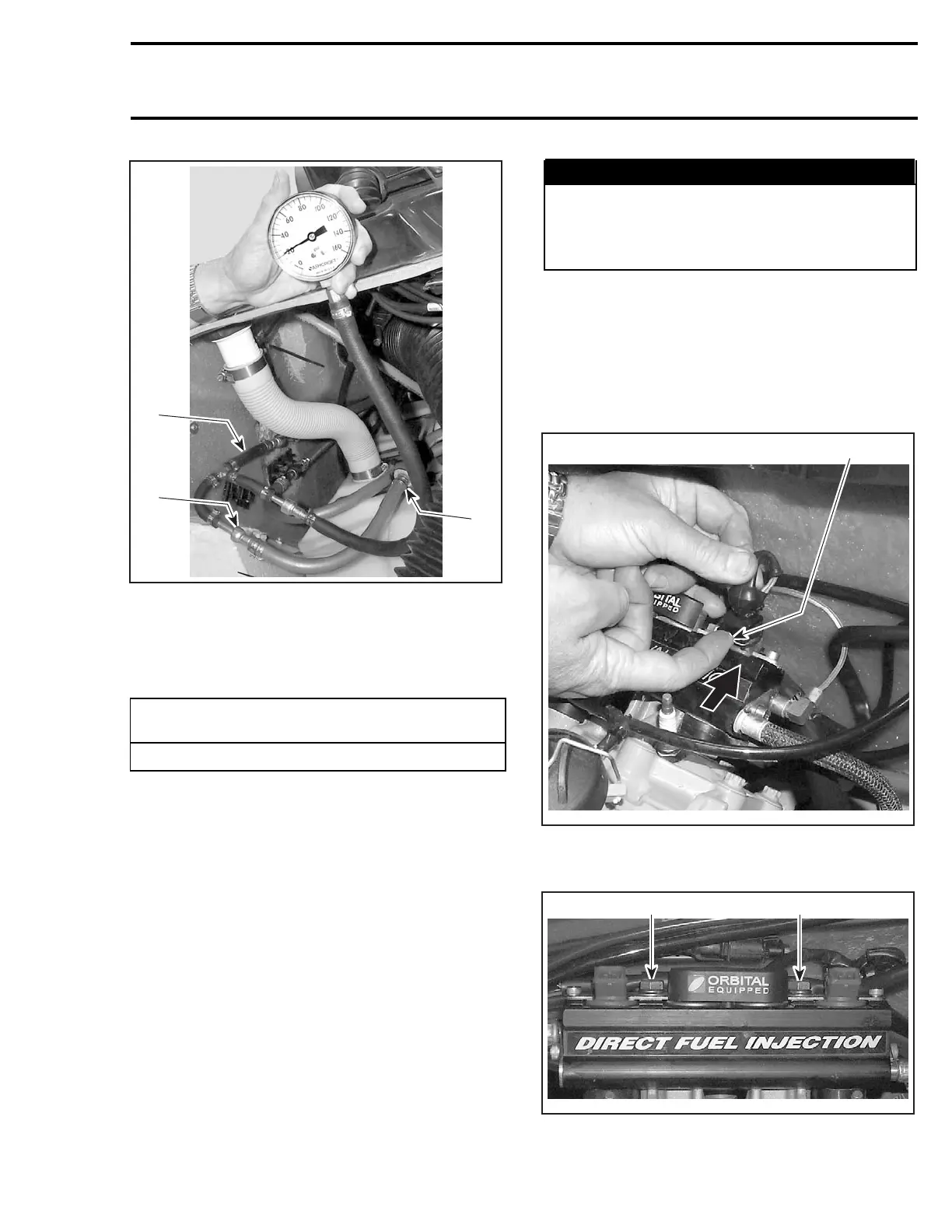 Install safety lanyard and observe fuel pressure.