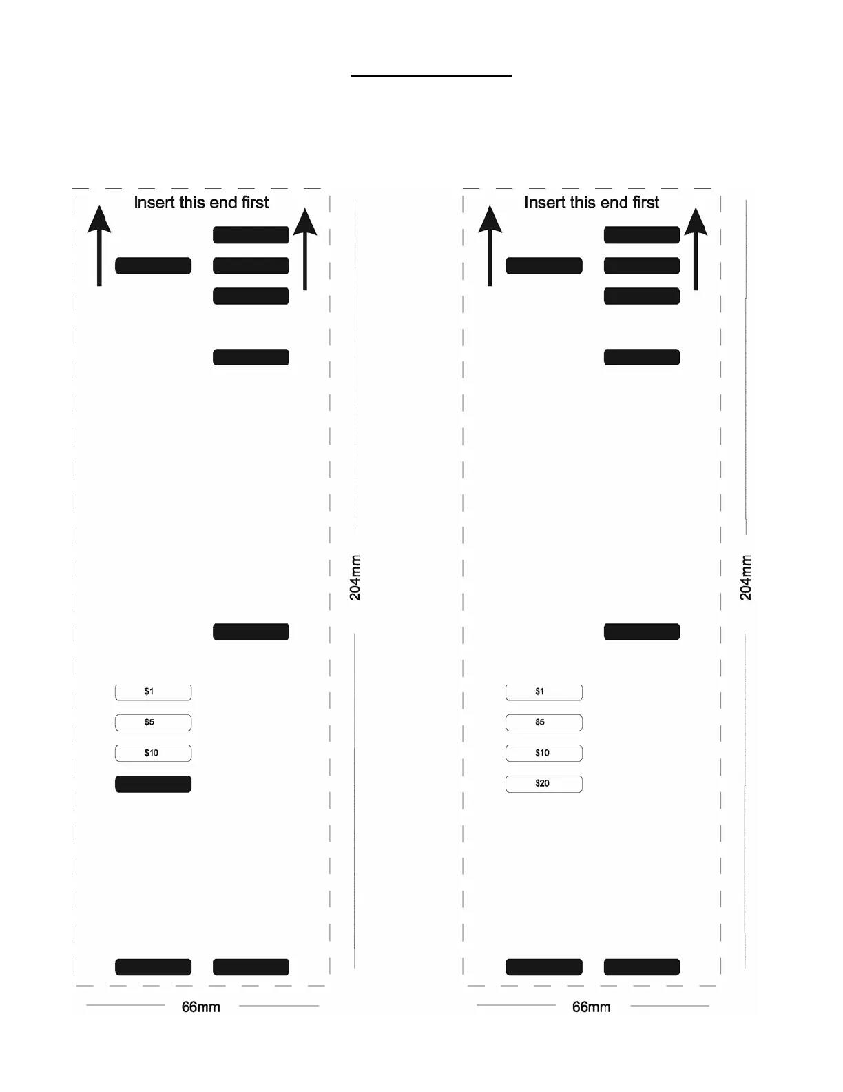 Carefully cut straight along dotted lines to create a programming card to change your machine to accept other bills.