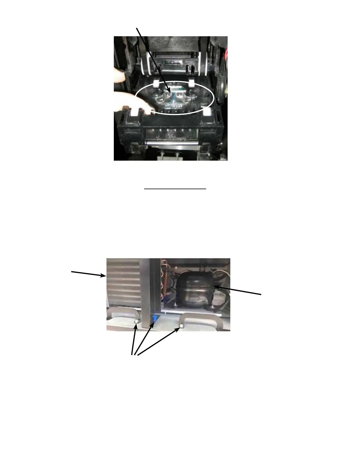 the front grill up and out. Remove the single blue thumbscrew from the center oor of the refrigeraon deck