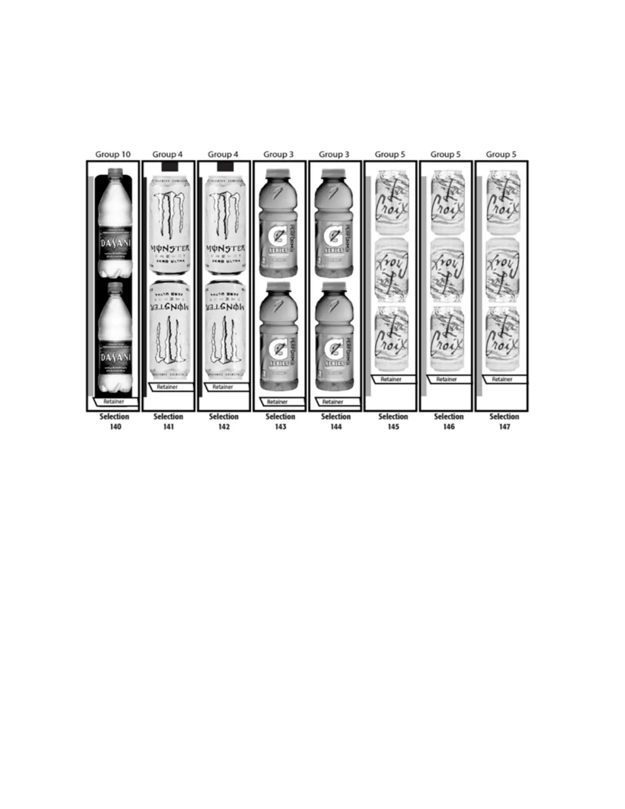 Your vending machine has been set by the factory for the following products and groups (see chart):