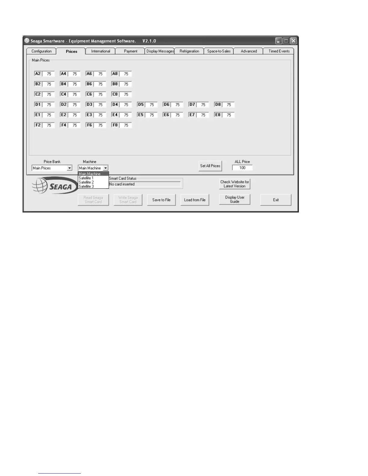 The VMC can hold prices for the Main Machine and also up to three Satellite (MDB USD) machines – prices for the