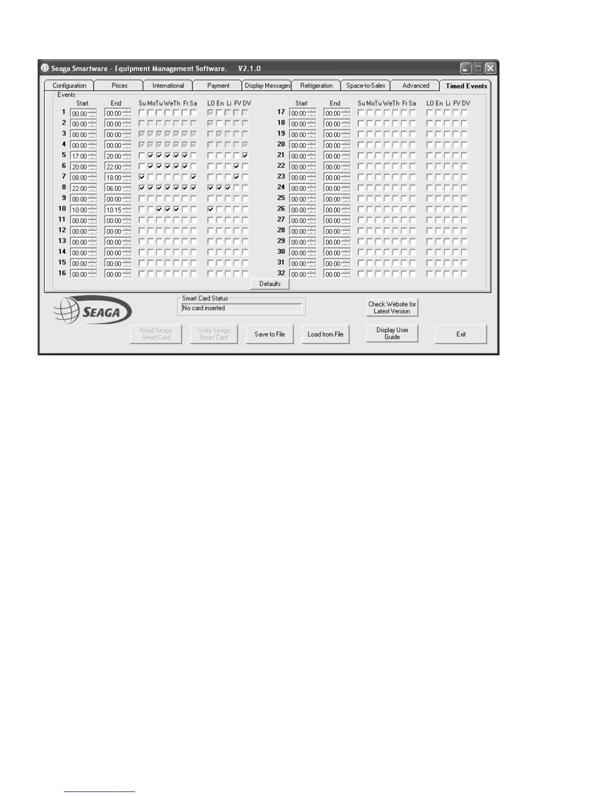 Version 1.10 and later Premier VMC software supports up to 32 separate timed events. Each event can be set to occur