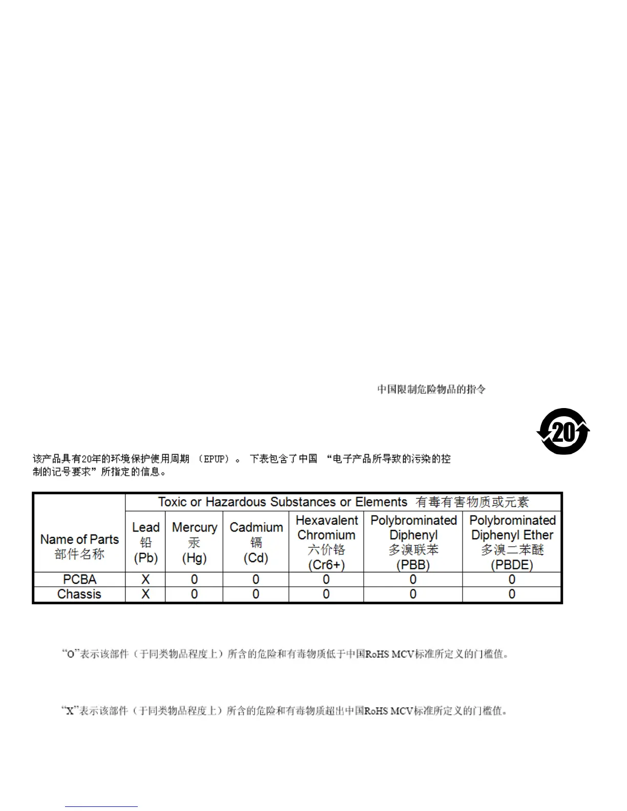 defined by the China RoHS MCV Standard.