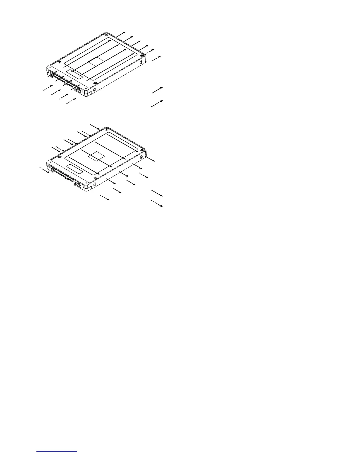 Mount the drive using the bottom or side mounting holes. If mounting the drive using the bottom holes, ensure not to