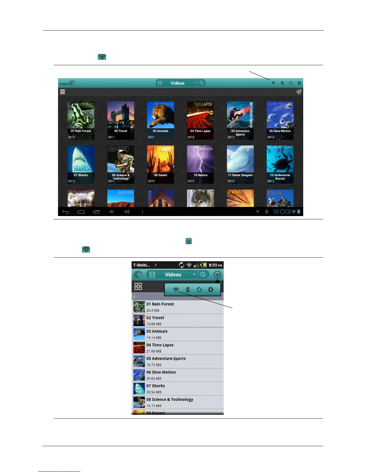 Figure 4: Location of the Wi-Fi icon in the smartphone version of the Seagate Media app