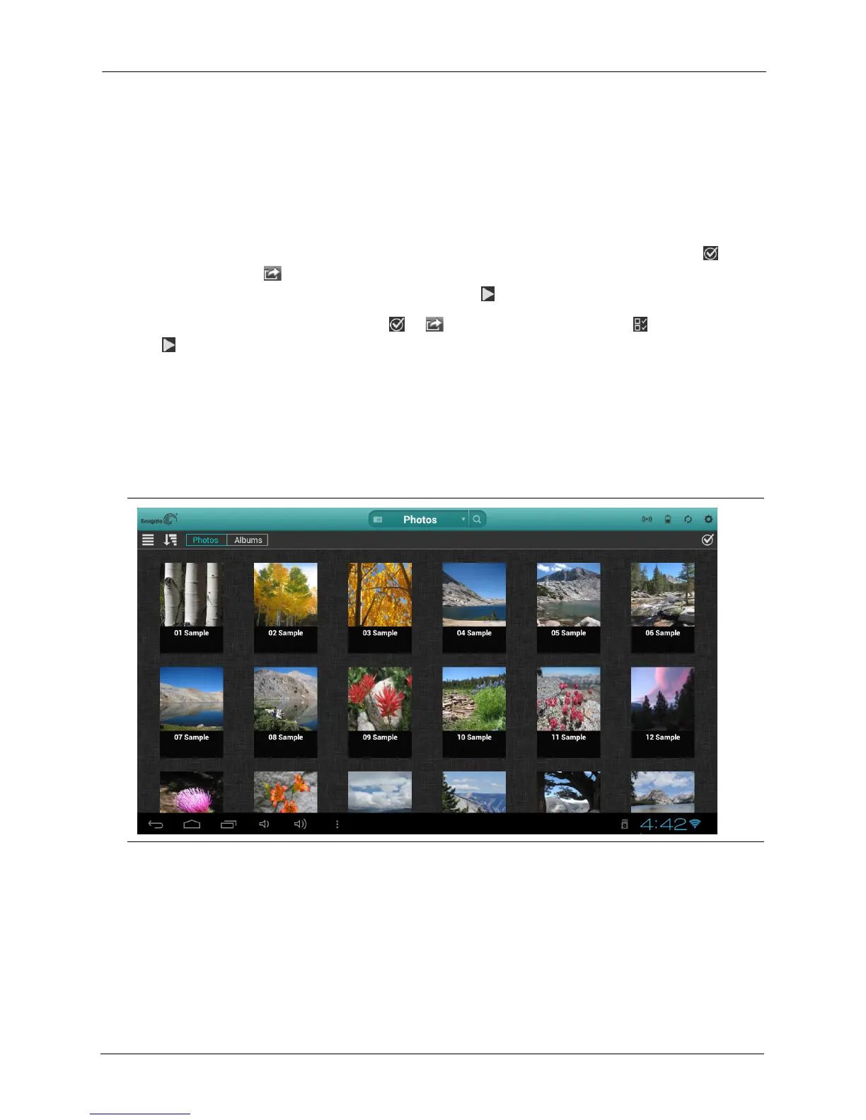 1. In the drop-down list at the top of the app, select Photos to display the photos on the device.