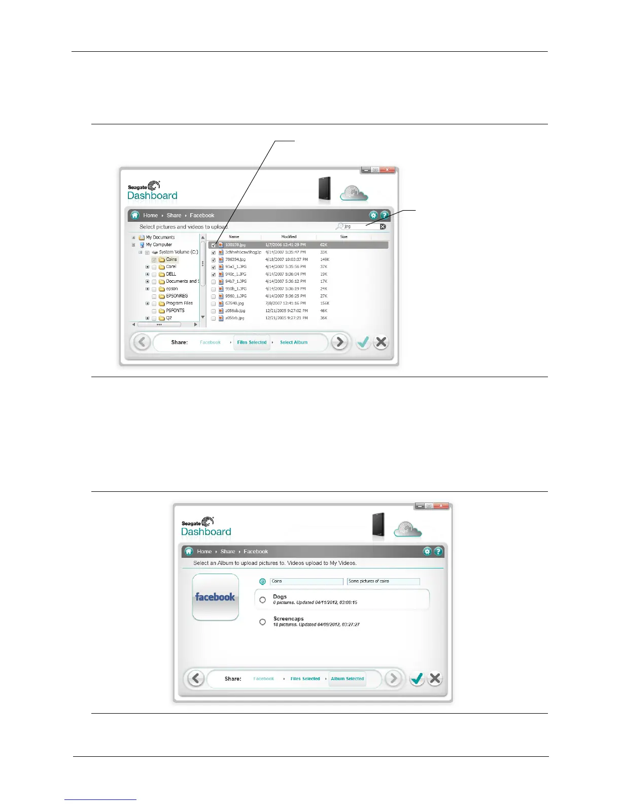 Figure 13: Seagate Dashboard File Selection Screen