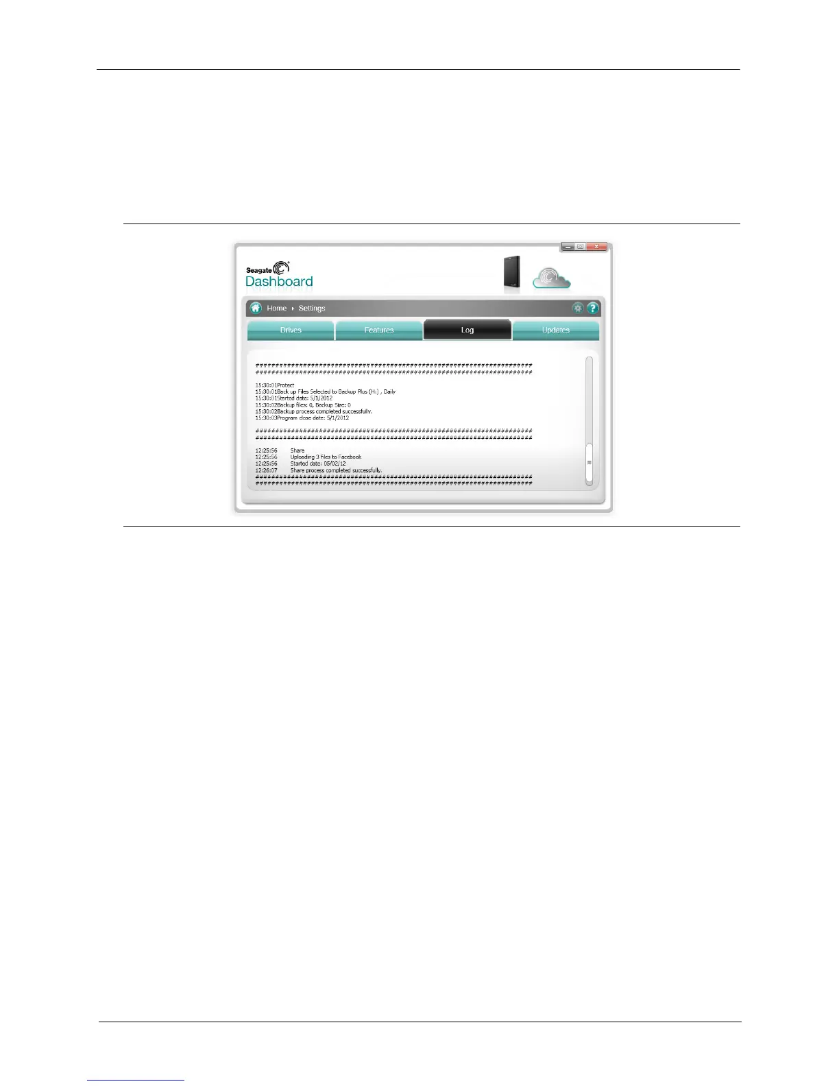 Figure 29: Seagate Dashboard Log Tab