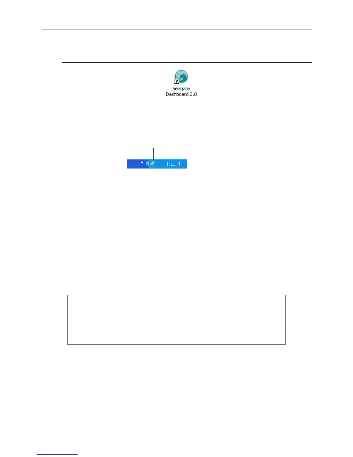 area on your computer desktop, indicates that the Seagate Dashboard agent is running in the