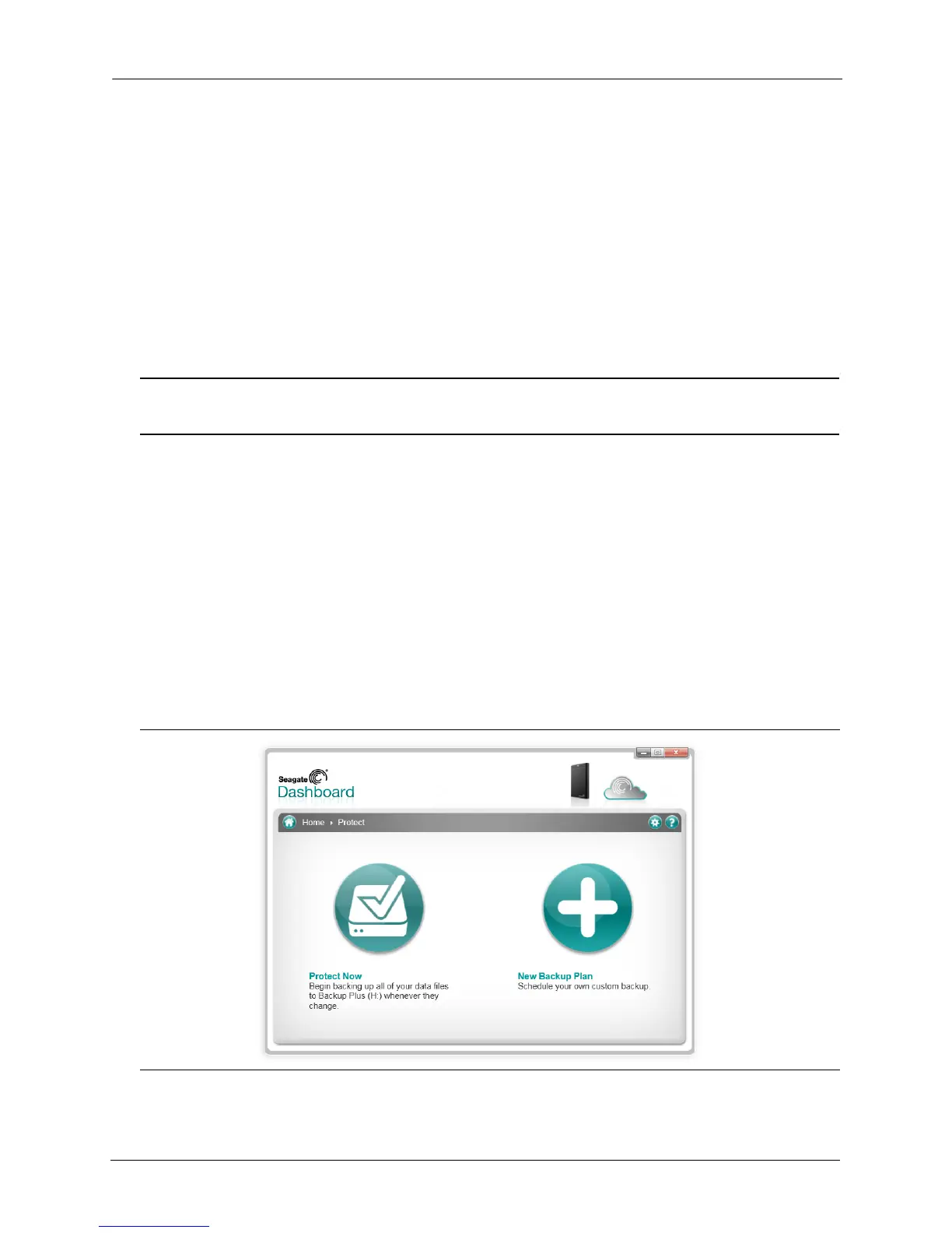 Figure 3: Seagate Dashboard Protect Screen
