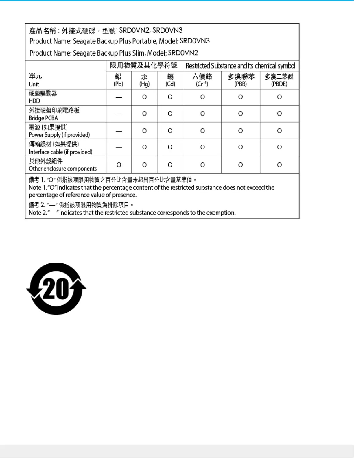 法”。为了符合中国 RoHS 2 的要求,我们根据“电子电气产品有害物质限制使用标识”(SJT 11364-2014) 确定本产品