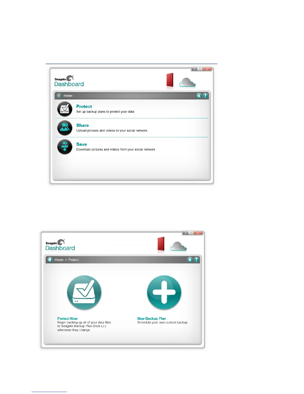 Protect Now: This will back up all of your data files to your Seagate Backup Plus drive