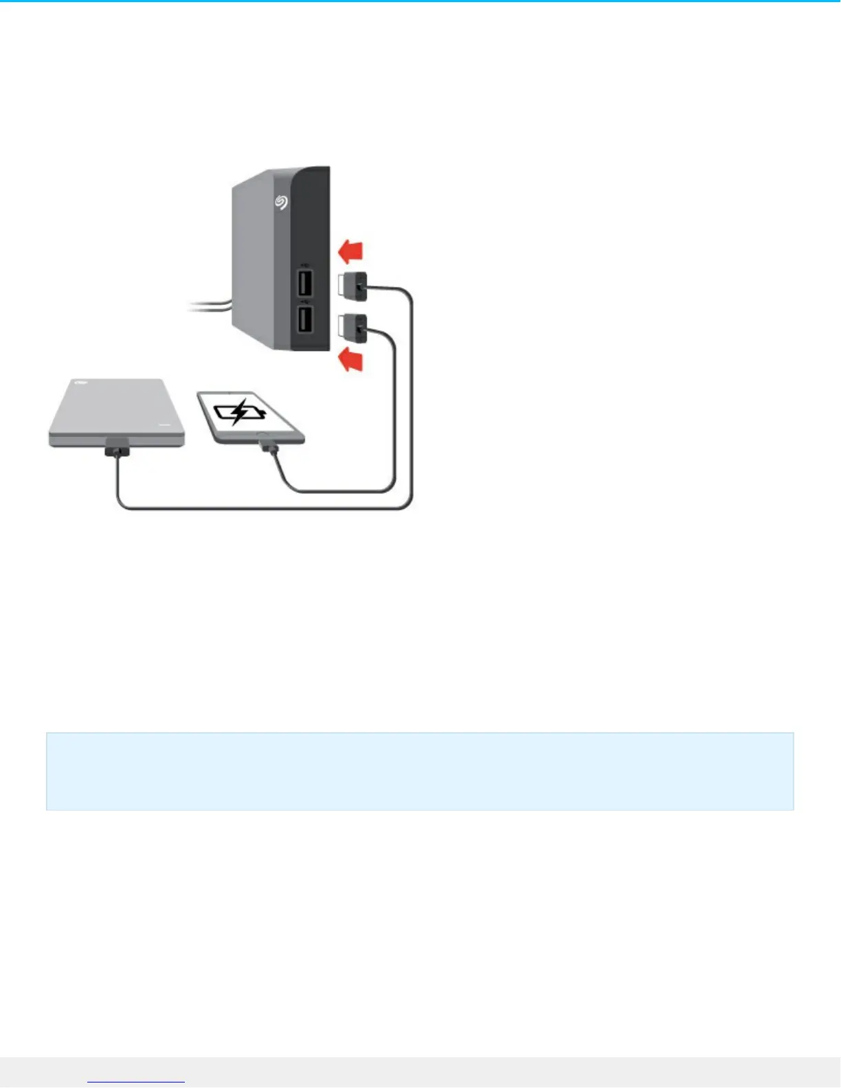 can connect compatible devices that support charging via USB to the USB ports. Backup Plus Hub must